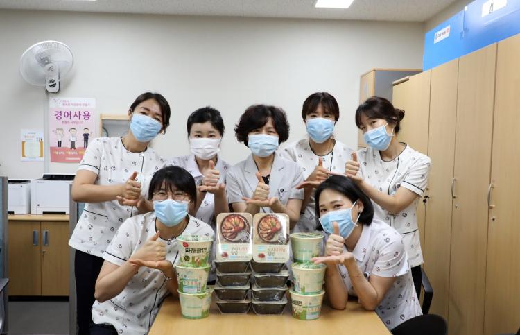 ±âÁõǰÀº ±¹°¡ÁöÁ¤À½¾Ð°Ý¸®º´µ¿¡¤¼±º°Áø·á¼Ò¡¤±¹¹Î¾È½Éº´¿ø¡¤°¨¿°°ü¸®½ÇÀ» ºñ·ÔÇÑ Äڷγª19 ÇöÀå¿¡¼ ±¸½½¶¡À» È긮°í ÀÖ´Â ÀÇ·áÁø°ú ¹ÌÈ¡¤½Ã¼³¡¤ÁÖÂ÷¡¤º¸¾È Á÷¿ø µî¿¡°Ô Àü´ÞµÆÀ¸¸ç, À̵éÀº ¼·Î ³ª´² ¸ÔÀ¸¸ç Àá½Ã³ª¸¶ Áñ°Å¿î ÈÞ½ÄÀ» °¡Á³´Ù.