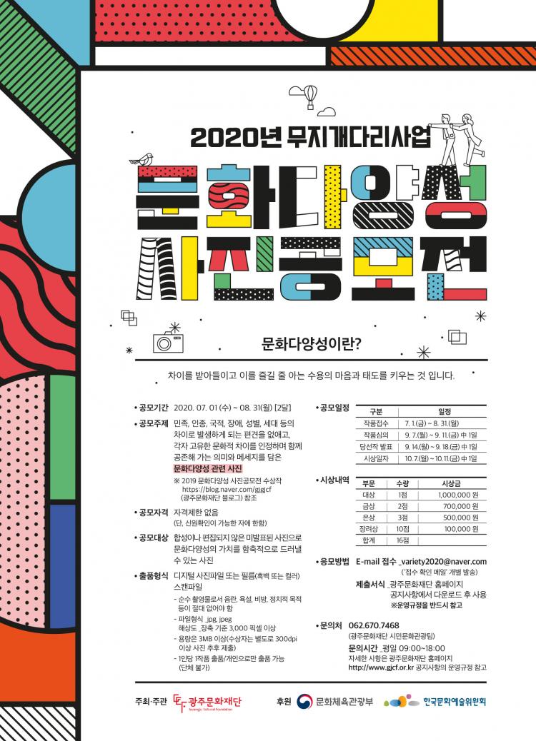 °ø¸ð±â°£Àº 7¿ù 1ÀÏ(¼ö)ºÎÅÍ 8¿ù 31ÀÏ(¿ù)±îÁö´Ù. ±¤ÁÖ¹®ÈÀç´Ü ȨÆäÀÌÁö(www.gjcf.or.kr)¿¡¼ ½Åû¼¸¦ ³»·Á ¹Þ¾Æ, »çÁø ÆÄÀϰú ÇÔ²² À̸ÞÀÏ(variety2020@naver.com)·Î Á¢¼öÇÏ¸é µÈ´Ù.